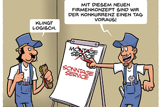 Cartoon: Ein Mann steht in seinem Keller. Um ihn herum stapeln sich Kisten. Er ruft: „SCHATZ! WIR MÜSSEN DRINGEND UNSEREN KELLER ENTRÜMPELN!“ Die Kisten…